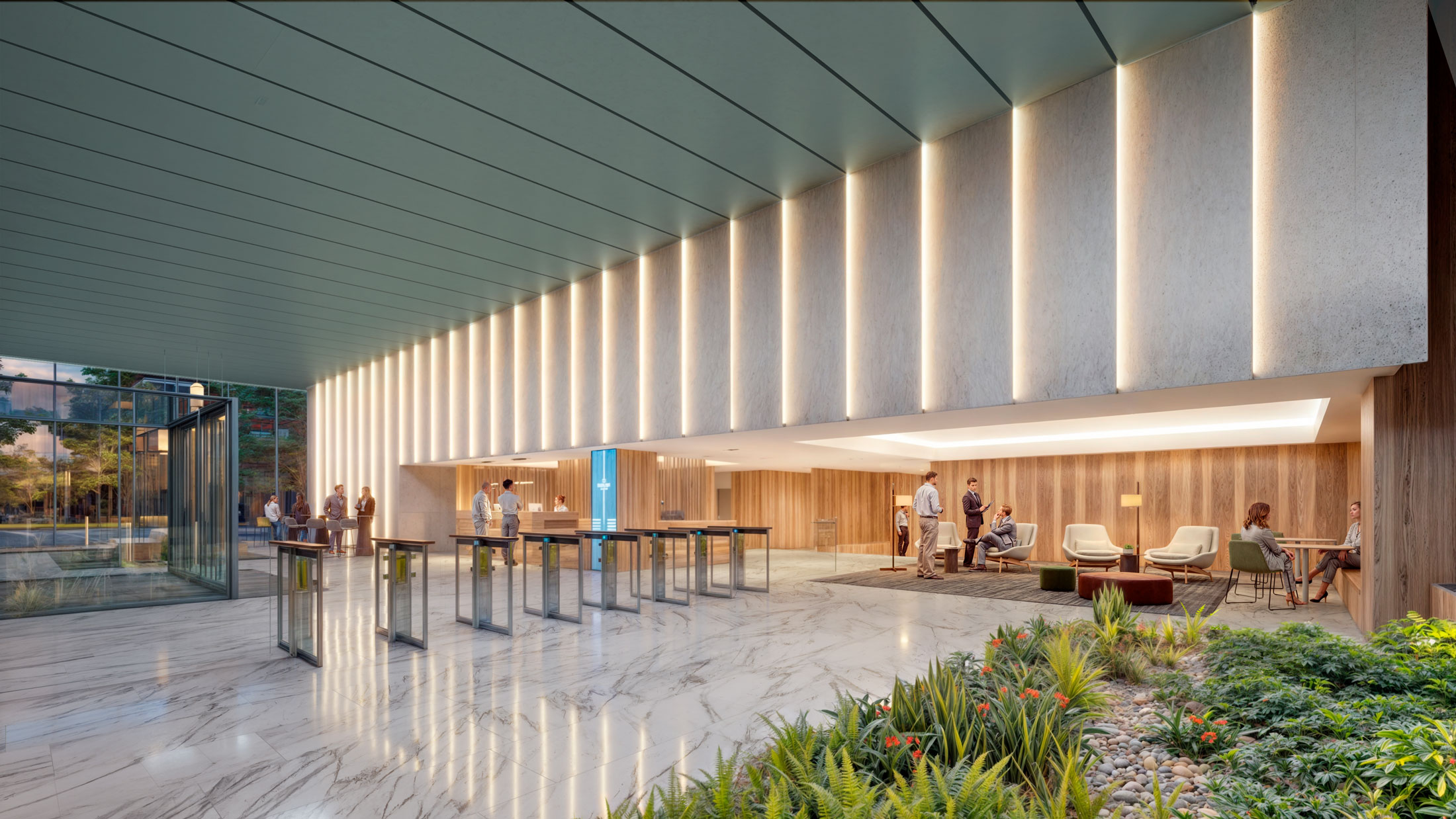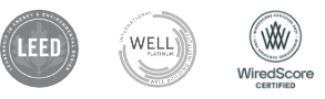 Certificaciones de sostenibilidad y eficiencia energética LEED Platinum y WELL Platinum, además de estar certificado por WiredScore, garantizando conectividad y eficiencia tecnológica.